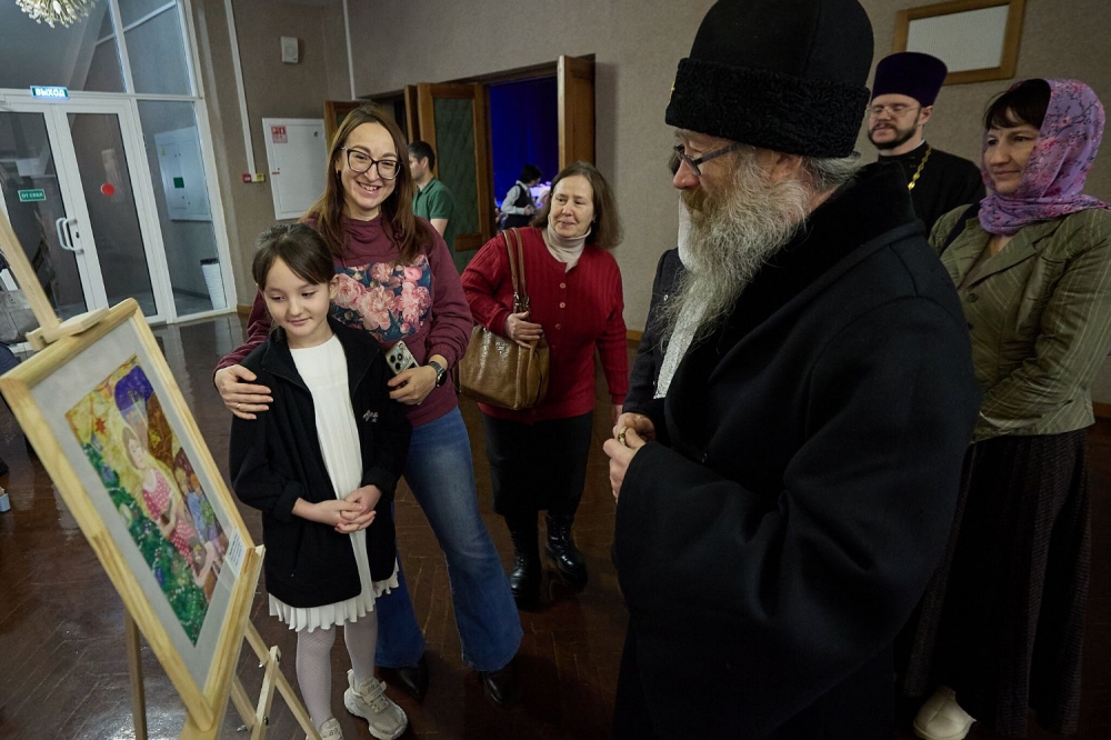 Предваряла фестивальный концерт выставка рисунков победителей регионального конкурса художественного творчества «Славим Рождество Христово!», которая развернулась в фойе театра. Выставку посетил митрополит Томский и Асиновский Ростислав. Владыка не только полюбовался яркими работами, но и познакомился и тепло пообщался с их авторами.